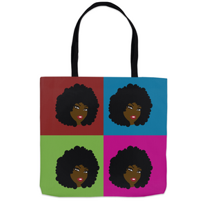 Afro - Multi-Color - Black Stationery Pop Art Tote Bag (18x18)