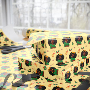 African American Fashionista - Sending Love for the Holidays - Yellow Christmas Gift Wrap Paper