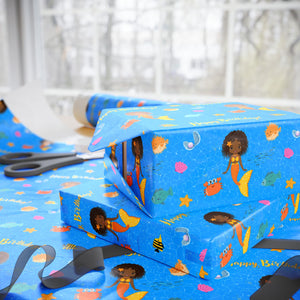 African American Mermaid Blue Gift Wrapping Paper (Short Hairstyle)