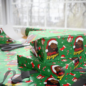 Happy Black Santa - Happy Holidays - Green Gift Wrapping Paper Roll
