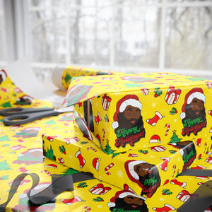 Happy Black Santa - Happy Holidays - Yellow Gift Wrapping Paper Roll