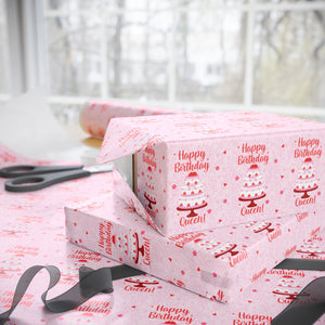 Queen Heart Strawberry Cake - Pink Happy Birthday Gift Wrap Paper Roll