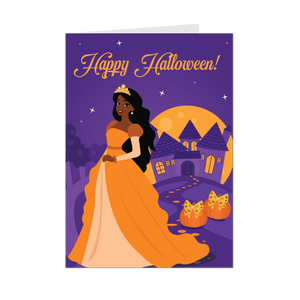 Orange & Black Princess, Fancy Pumpkins & Castle - Happy Halloween Greeting Card