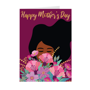 • Maroon & Gold Flower Elegance - Afro Woman African American Mother's Day Cards