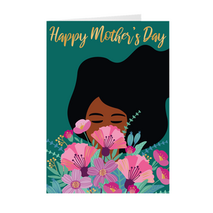 Flower Green Gold Elegance - Afro Woman - African American Mother's Day Cards
