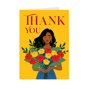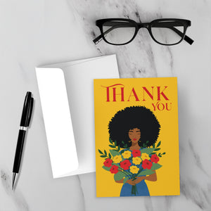 Gratitude & Flowers - Black Woman - African American Thank You Cards