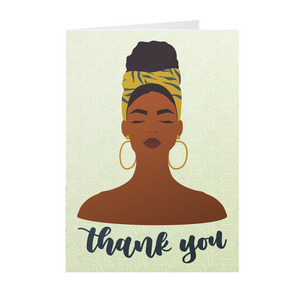 Red & Gold Head Wrap - Black Woman - African American Thank You Cards
