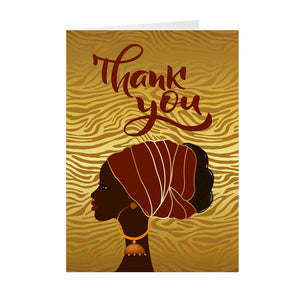 Red & Gold Updo - Black Woman - African American Thank You Cards