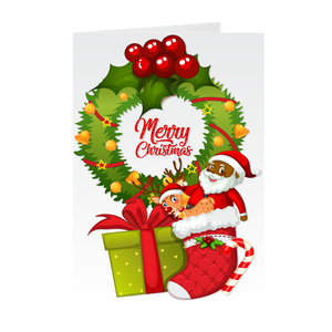 Wreath, Reindeer & Black Santa Claus Merry Christmas Greeting Card