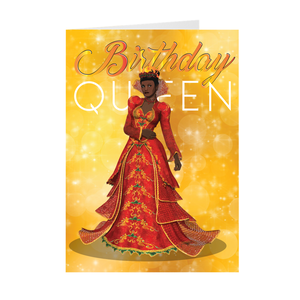 Birthday Queen - Red & Gold - African American Woman Greeting Card
