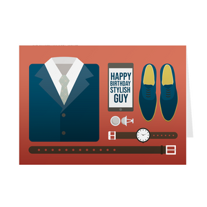 Blue Suit & Accessories - Stylish Guy - Black Stationery Birthday Greeting Card