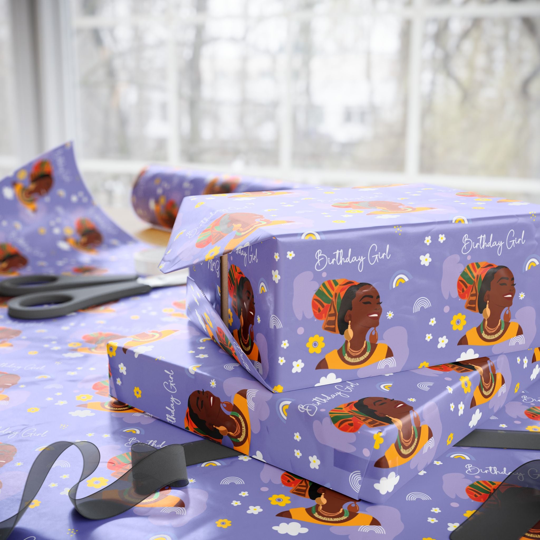 Features a beautiful African-American woman smiling, and says "Birthday Girl!"