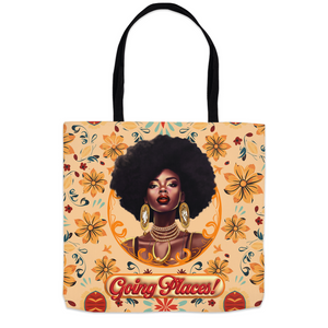 Going Places - Floral & Diamond Glam - Black Woman - (18x18) Tote Bag