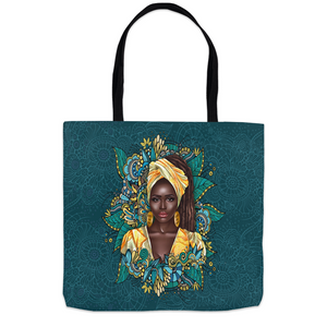 Floral & Diamond Glam - African American Woman - (18x18) Tote Bag